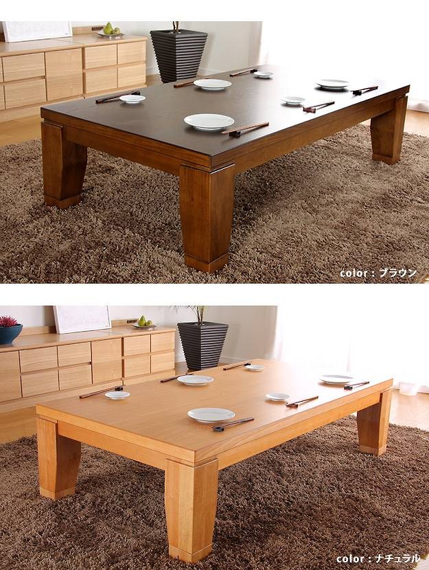 商品について:シンプルなデザインの日本製こたつと色柄豊富なこたつ布団のセット。どっしりとした太い脚に厚めの天板。がっしりとした安定感のあるつくりになってます。こたつもテーブルもこれ1台でOK♪