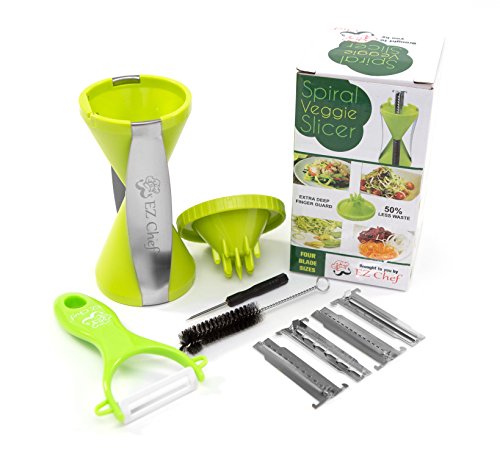 EZ Chef Comfort Handle, BPA Free, 4-Blade Vegetable Spiralizer Bundle