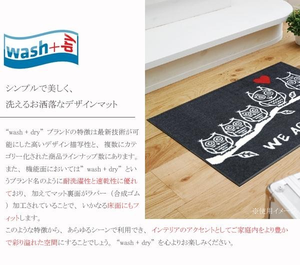 | 最新技術が可能にした高いデザイン描写が素敵なマットです。機能面においては「wash+dry」というブランド名のように、耐洗濯性と速乾性に優れており、加えてマット裏面がラバー(合成ゴム)加工されていることで、いかなる床面にもフィットします。あらゆるシーンで利用でき、インテリアのアクセントとして、ご家庭内をより豊かで彩り溢れた空間にすることでしょう。 |