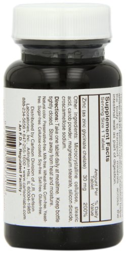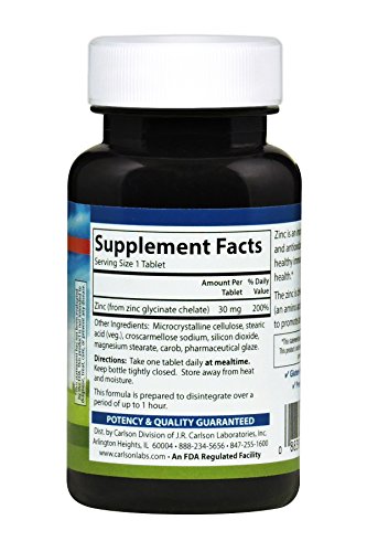 Carlson Labs Chelated Zinc 30mg, 100 Tablets