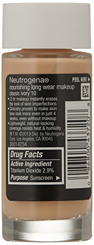 Neutrogena Nourishing Long Wear Liquid Makeup Foundation With Sunscreen, 10 Classic Ivory, 1 Fl. Oz.