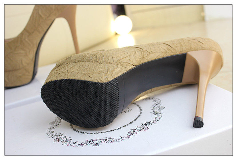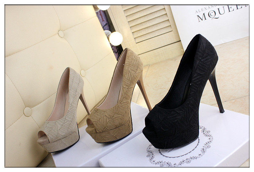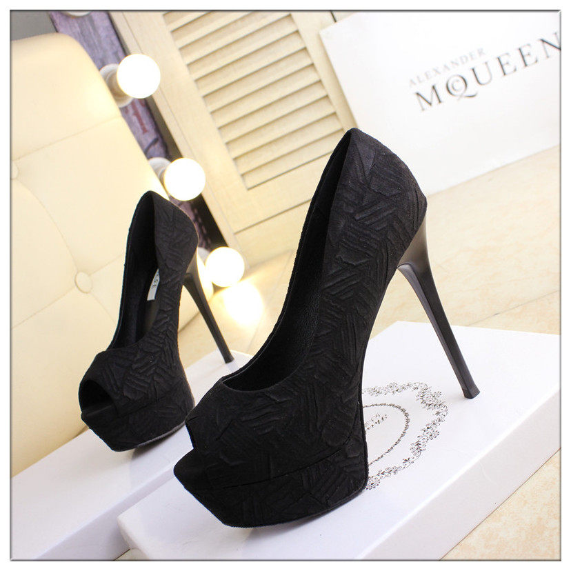 13cm细跟单鞋鱼嘴鞋超高跟春夏防水台夜店黑高跟鞋女裸色