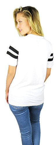 Unisex sizing. Loose fitting fashionable football tee, perfect for everyday. Model is wearing size Small. For a more fitted fit, please purchase a size below your normal size.