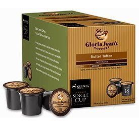 This Gloria Jean's creation was inspired by sweet, caramel butter toffee. Gloria Jean's Butter Toffee flavored K-Cups brew a rich, flavorful cup of coffee accented by the smooth, creamy taste of caramel. Includes a box of 24 K-Cups.