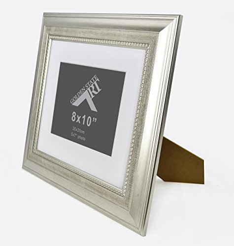 -. Title : Golden State Art, 8x10 Frame with White Mat for 5x7 Picture, Table-Top Easel Stand, & Real Glass, Color: Champagne Silver