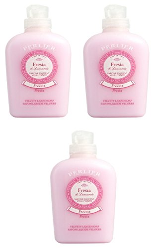 Perlier: "Fresia di Lanzarote" Liquid Soap, Freesia Scent 10.1 Fluid Ounces (300mL) Bottle with Measuring Cap (Pack of 3) [ Italian Import ]