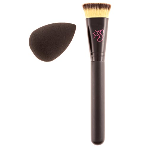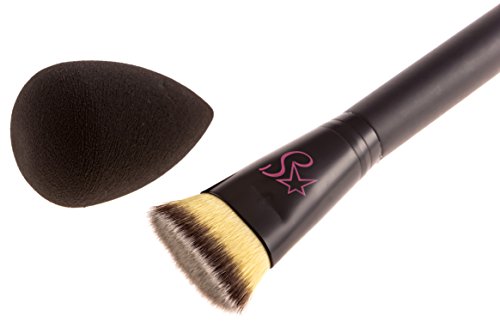 Stashia Flat Top Kabuki Brush Slim Contour with Blender Sponge Cruelty Free Face and Cheek