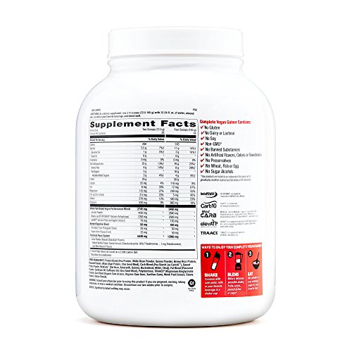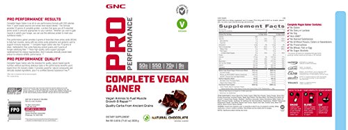 -. Binding : Health and Beauty -. Brand : GNC -. EAN : 0048107177829 -. Feature : Vegan Aminos To Fuel Muscle Growth & Repair / Quality Carbs From Ancient Grains / Pro Performance Results / Complete Vegan Gainer Is An All-In-One Performance Formula With 550 Calories From 17 Plant-Based Sources And Whole-Food-Based Blends.This Formula Provides 50 Grams Of Complete Protein, A Protein That Gives You All 9 Essential Amino Acids In Amounts ApproP.R.Iate For Your Nutrition.Whether You Want To Gain Muscle Or Satisfy Your Hunger, You Can Use This Delicious Protein To Meet Your Nutritional Needs. / This Performance Gainer Provides 9 Grams Of Branched Chain Amino Acids (Bcc) To Help Fuel Muscles, Along With Key Amino Acids Glutamine And Glutamic Acid To Support Immune Response.Complete Vegan Gainer Also Has 70 Grams Of Clean, Maltodextrin-Free Carbs Featuring Ancient Grains And 8 Grams Of Hunger-Satisfying Fiber.These High-Quality Carbs Support Glycogen Replenishment For Energy Regeneration. And It Includes Clinically Proven Beet Extract To Enhance Athletic Performance. -. Label : GNC -. Manufacturer : GNC -. MPN : 369876 -. PackageQuantity : 1 -. PartNumber : 369876 -. ProductGroup : Health and Beauty -. ProductTypeName : HEALTH_PERSONAL_CARE -. Publisher : GNC -. Size : 4.5 lb(s) -. Studio : GNC -. Title : GNC Pro Performance Complete Vegan Gainer - Natural Chocolate -. UPC : 048107177829