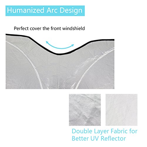 Upgrade Arc Shape Opening Design: Compare to the old windshield shade, this one adds an arc opening for the rearview mirror that design will enable the car sun visor better cover the whole windshield.