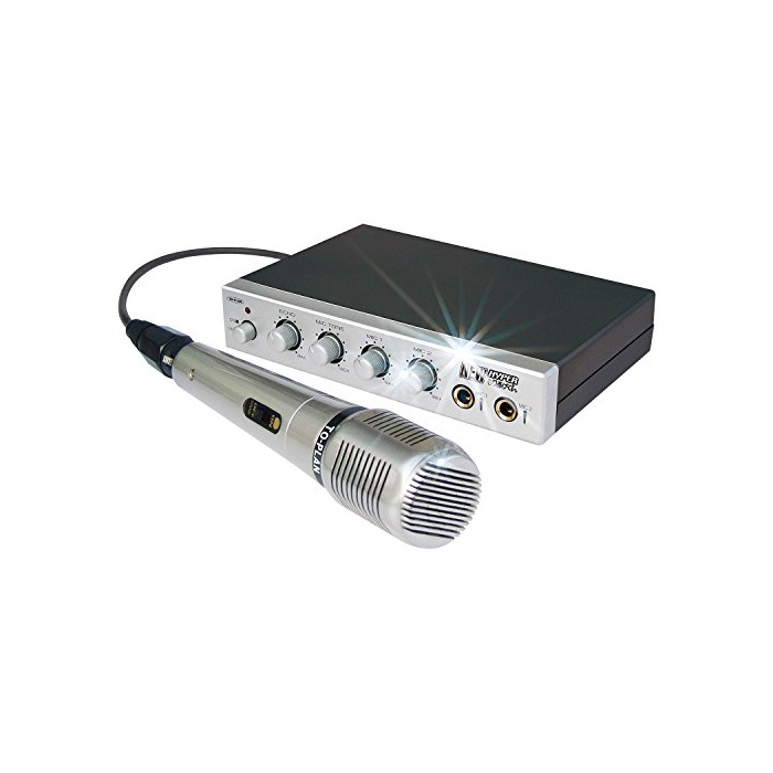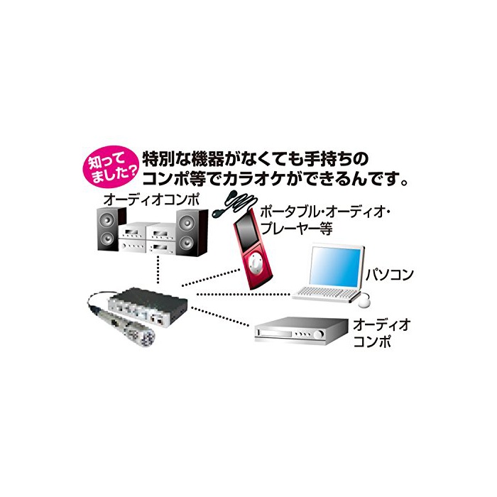 마이크는 2개 사용 가능하고 듀엣도에 옵니다.PC나,휴대에 카라오케의 소프트의 재생 시나,인터넷의 카라오케 사이트가 이용될 때의,주변기기로서도 몹시(큰 일) 호평입니다.또한일반 오디오 기기 와 연계해서 맞추면,고가의 카라오케 전용기는 불요에,간편하게 카라오케가 즐길 수 있습니다.