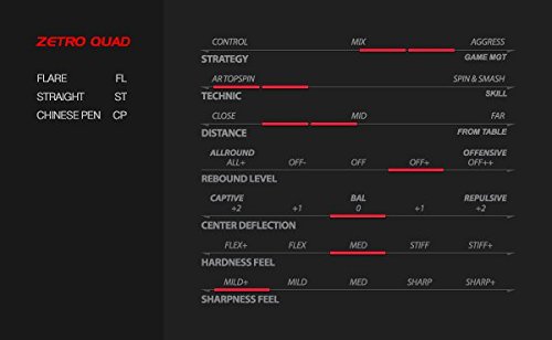 Studio : XIOM Publisher : XIOM Binding : Misc. Product Description ZETRO QUAD is a blade purely for the improvement of the ability of topspin. "QUAD" means our innovative technology of using four layers of artificial materials sophisticatedly. Zephylium fiber which is directly placed under the top layer increases the ability of grabbing balls. Soft carbon fiber under middle layers adjusts overall performance, and at the same time reduces the unnatural feel which comes from the Zephylium fiber. Top layer of selected KISO HINOKI WOOD guarantees comfortable feel. The result is great ability of topspin. Making heavy topspin is effortless, and even secure. Players will always be able to take initiative of their game by effective counter topspin attack, and keep the continuous topspin from any distance. 0