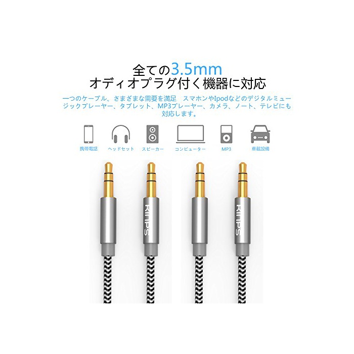 접속 보조:스테레오 오디오 케이블은 가정용 오디오 기기나 차량 탑재 오디오 기기 등에 대응한 오디오 케이블로,음원과 재생 기기의 사이의 거리가 먼 경우의 접속을 보조합니다.