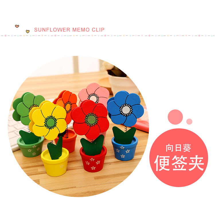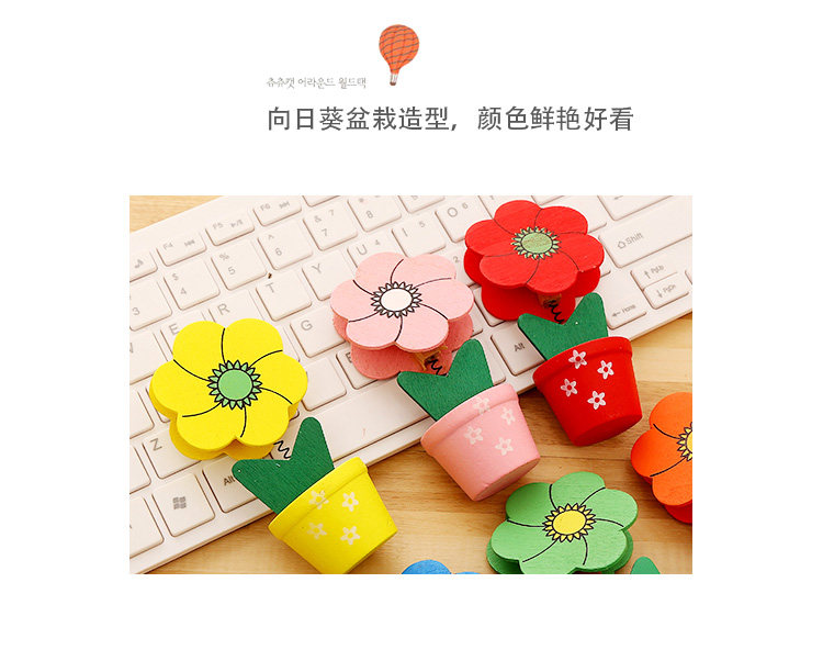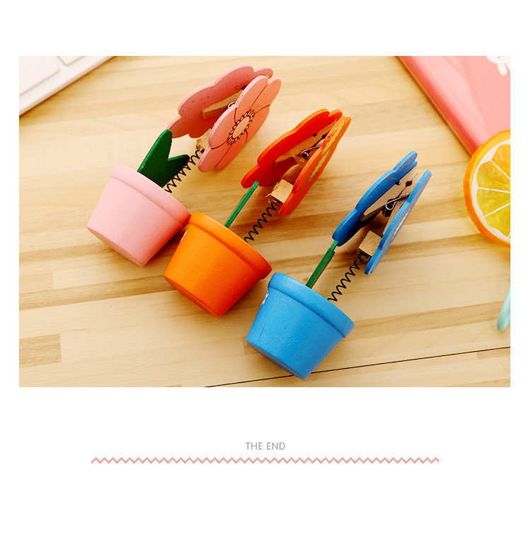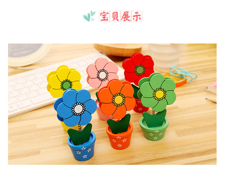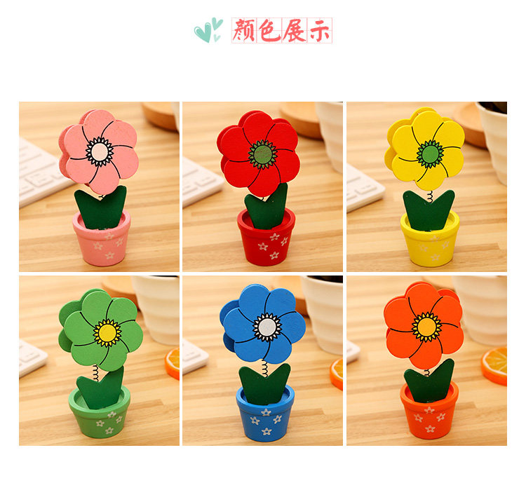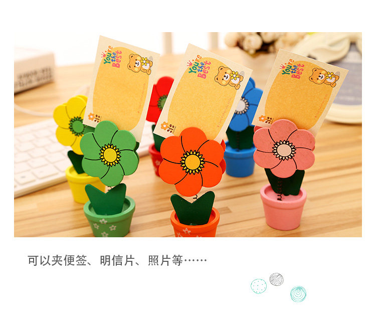 创意便签夹文具创意卡通可爱田园木质彩绘小花盆留言夹生日奖品