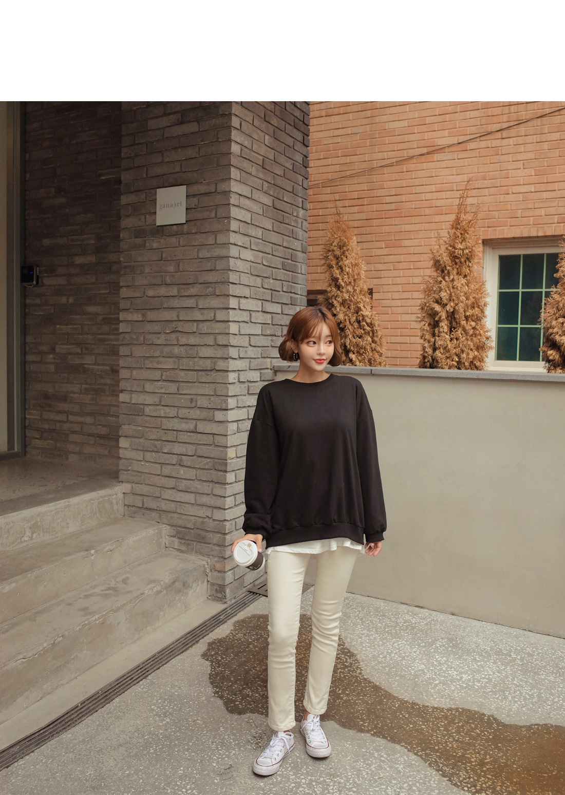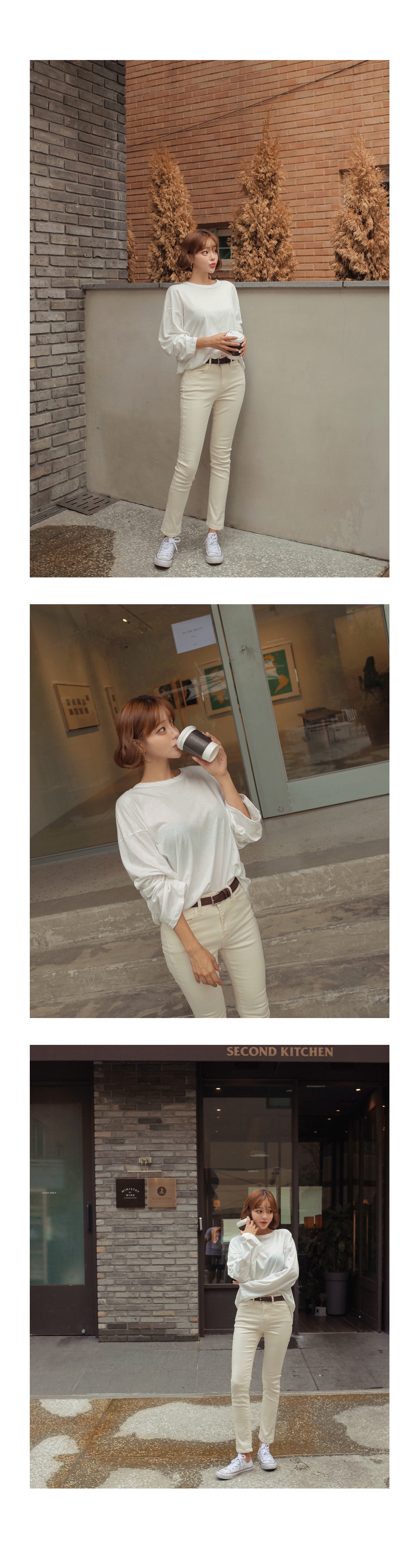베이직한 라운드 네크라인에 긴팔 소매로 제작되었구요.