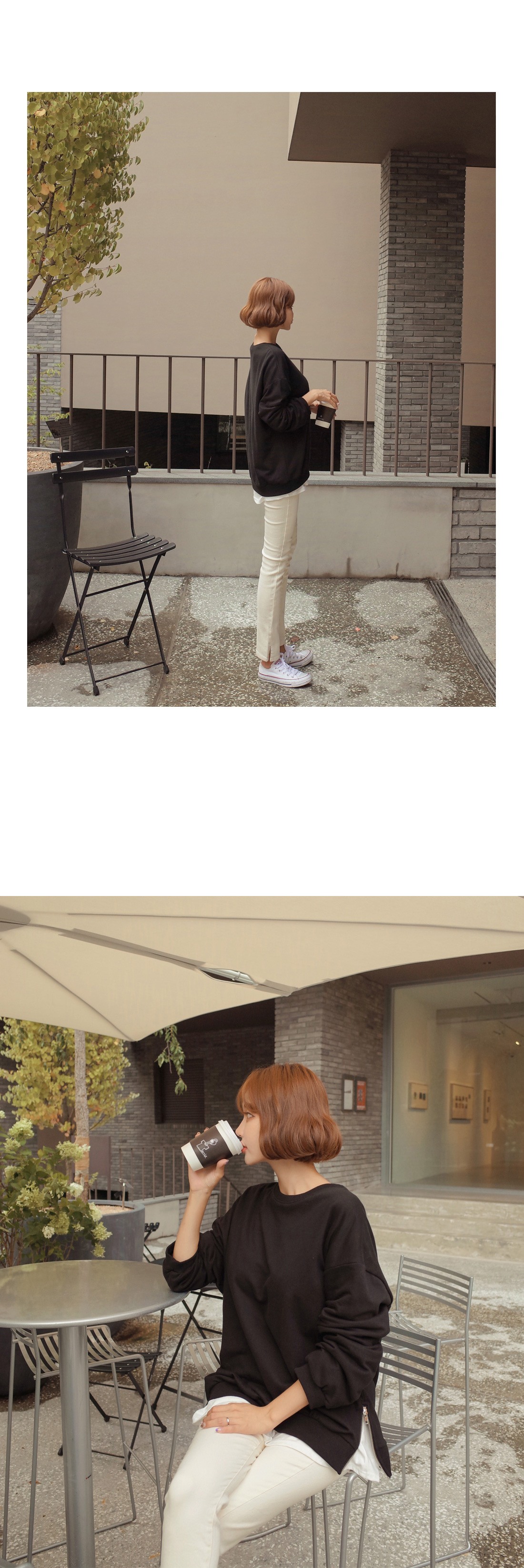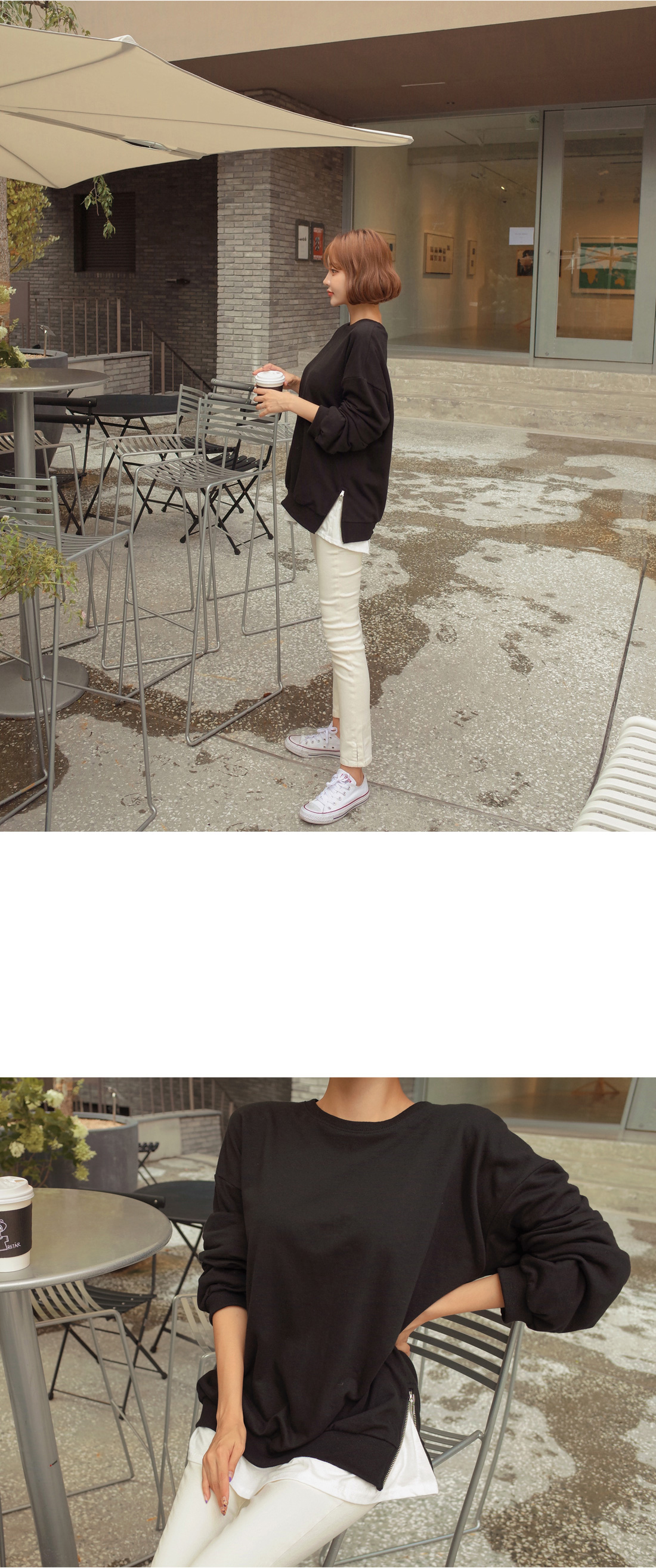 모델이 착용한 것처럼 맨투맨 안에 레이어드는 물론!