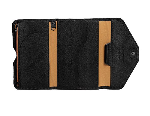 -. Feature : Imported / Synthetic Leather & Faux Suede / Durable and Can carry a variety of items such as your key, pen, cards, passport, bills, coins, smartphone and so much more! / Measurement : 6.5" x 4.5" x 1.0" inches / Multi pocket, 5 card slots, Pen holder, Passport pocket, 1 Coupon slot, 1 Key ring, 1 Coins zipper pocket,