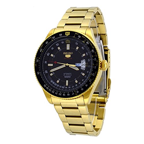 -. Title : Seiko 5 Sports SRP618 Men's Gold Tone Stainless Steel Pilot Slide Rule Bezel 100M Automatic Watch