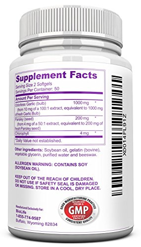 Fantastic garlic and parsley supplement, contain a highly concentrated source of garlic which provide antioxidant. Garlic extract is richer in antioxidants. It's effective in boosting the body's immune system, at the same time lowering the risk for heart disease, anti-infection. Taking garlic softgel remove all the discomforts and side effects of garlic! Our garlic supplement is contained in capsules. Our product is specially formulated to provide strong immune support, preventing the buildup of free radicals in the body. Trust only biolife when it comes to garlic capsules. We use garlic extract that is derived from the best herbs that grow in their natural habitat. Only the highest quality herbs go into every capsule of our garlic extract supplements. Proudly made in USA, top quality in FDA-registered & inspected, GMP-certified facility., gluten free, and highest potency garlic with allicin supplement today absolutely risk free.