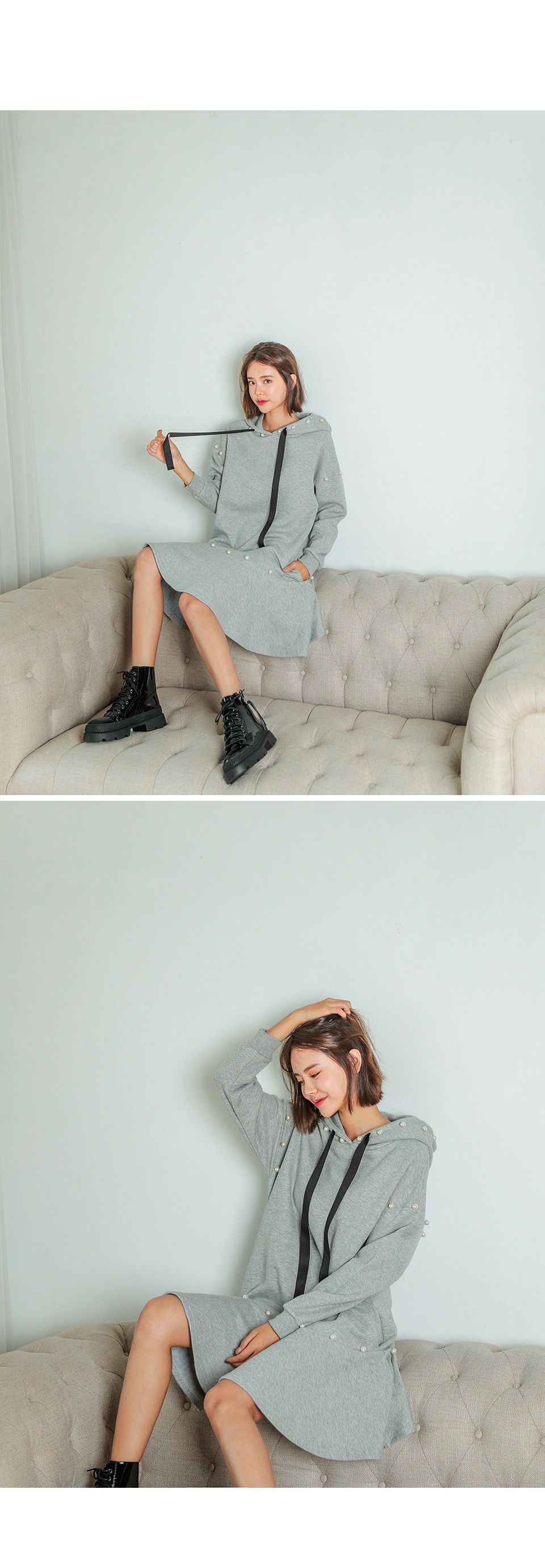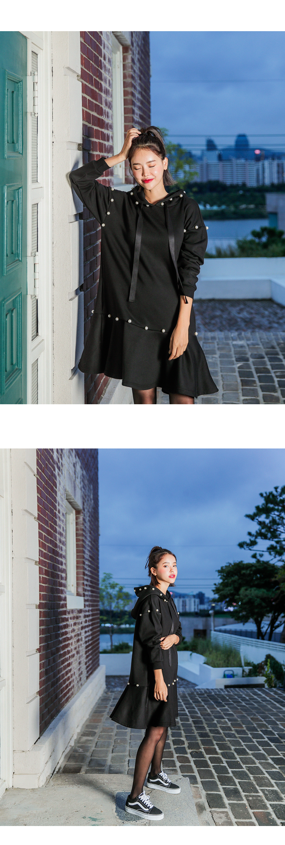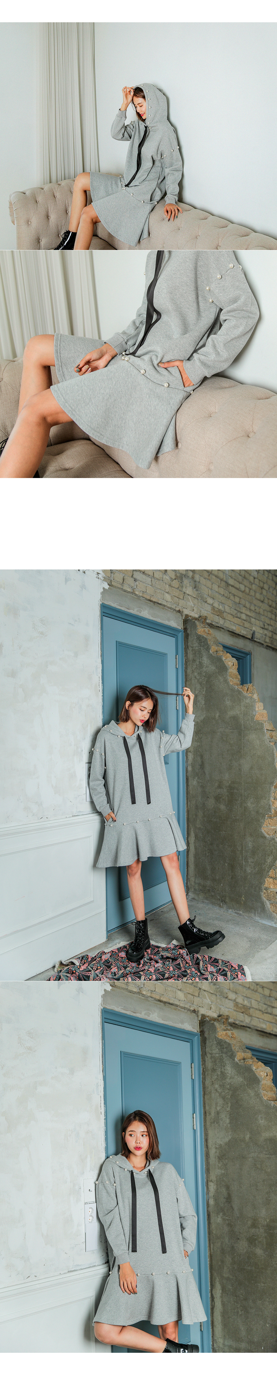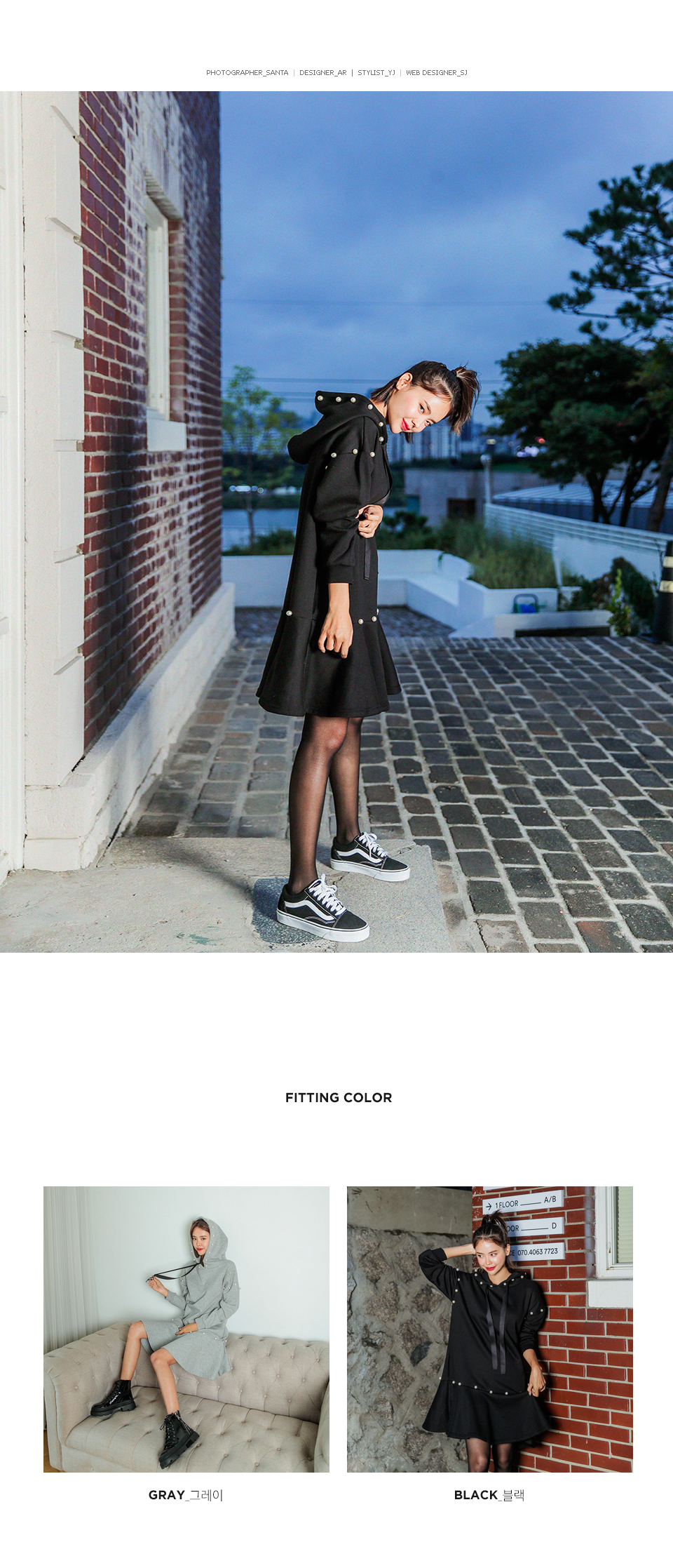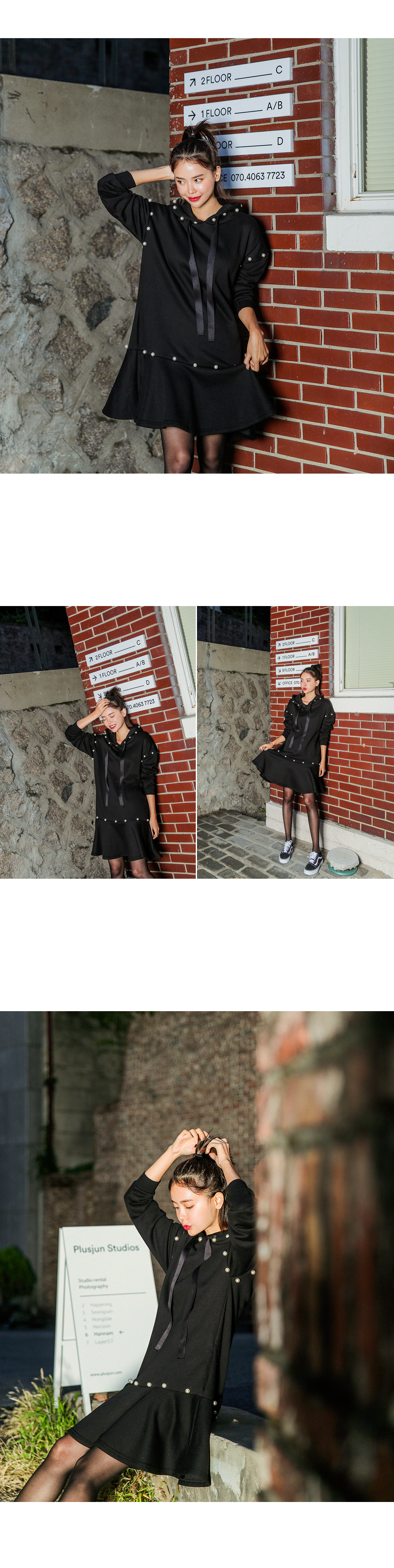 후드리본을 길게 만들어 더욱더 러블리 한 느낌을 줄수있는 원피스입니다.