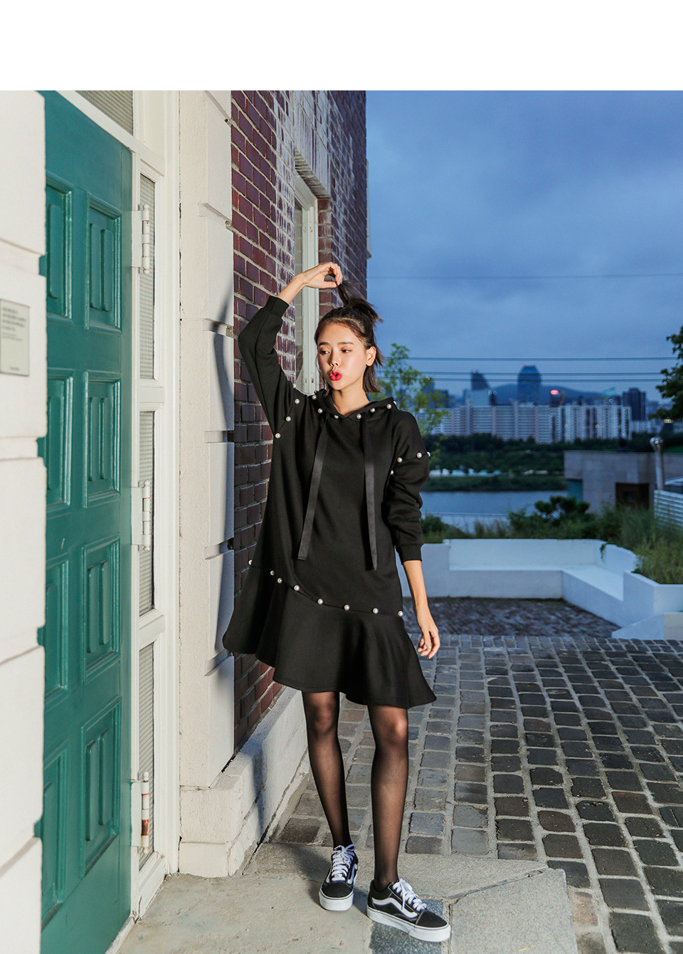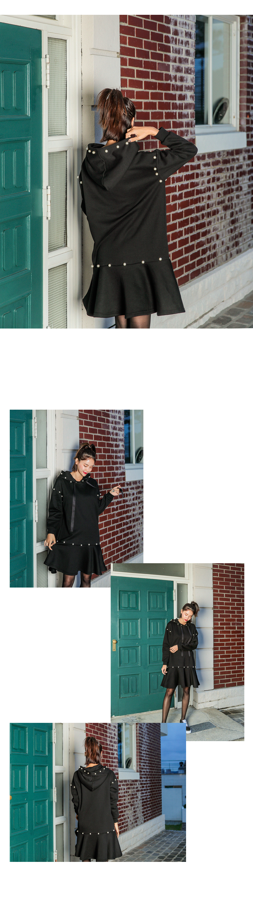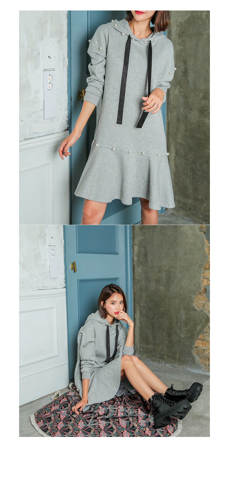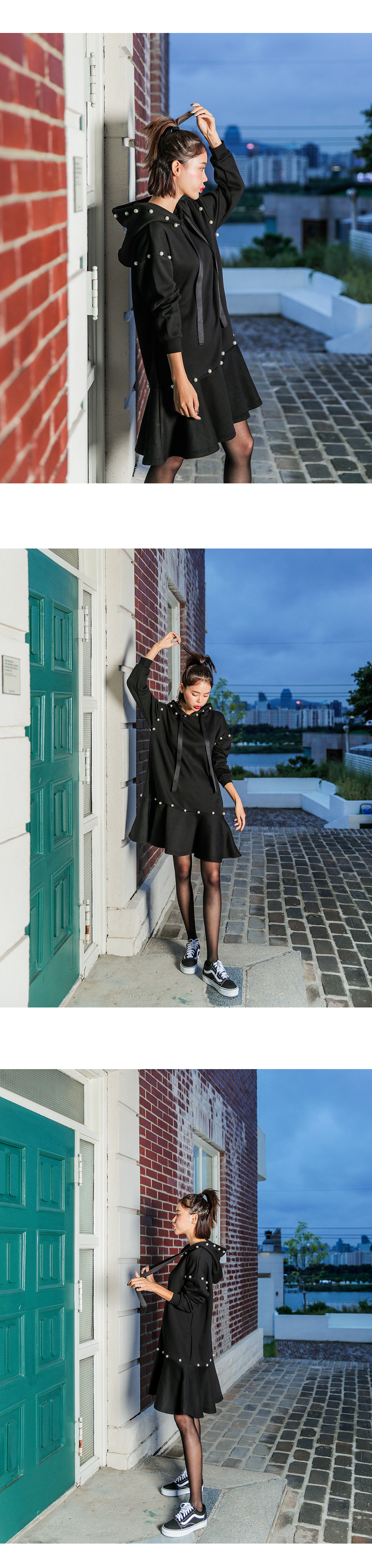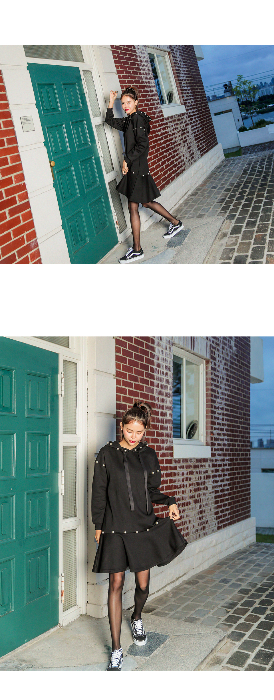 후드리본을 길게 만들어 더욱더 러블리 한 느낌을 줄수있는 원피스입니다.