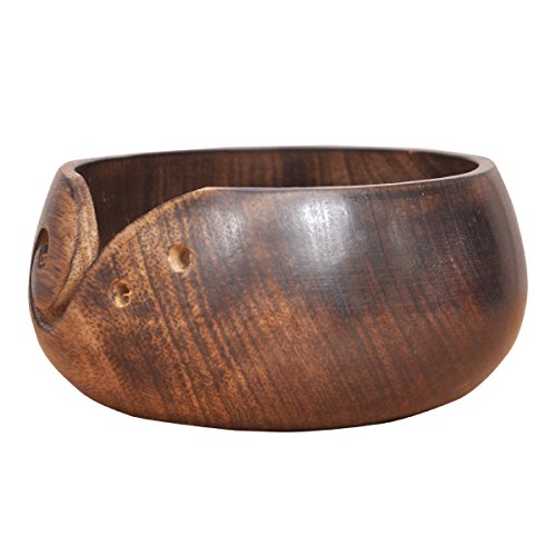 Wooden Yarn bowl hand made by Indian Artisans with Premium Mango wood for knitting and Crochet - with holes to keep knitting needles