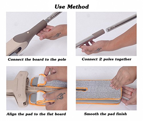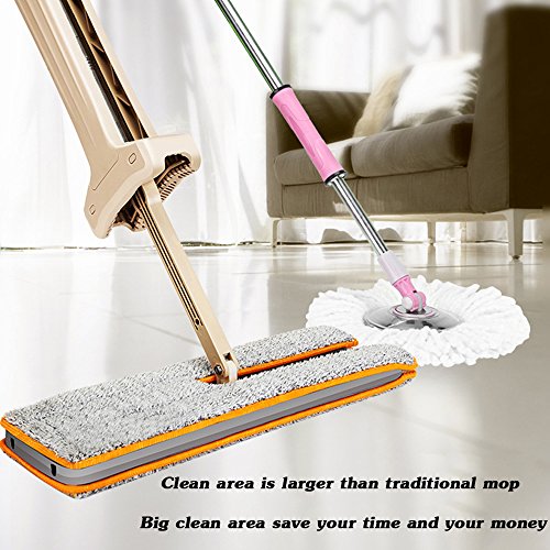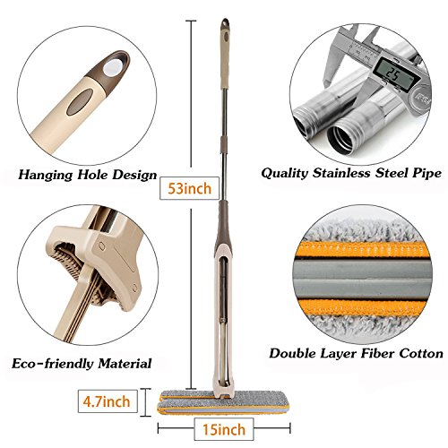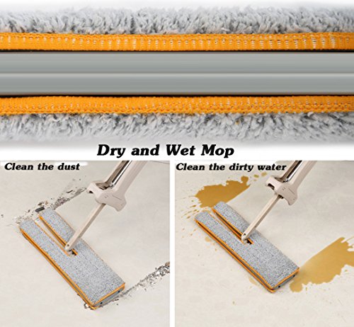 - New Upgrade Double Sided Microfiber Mop- Creative double sided flat mop with self-cleaning function. it's easy to clean stubborn stain, free your hand from cleaning. Adjustable stainless steel poles allowed to adjust length and clean the corner.