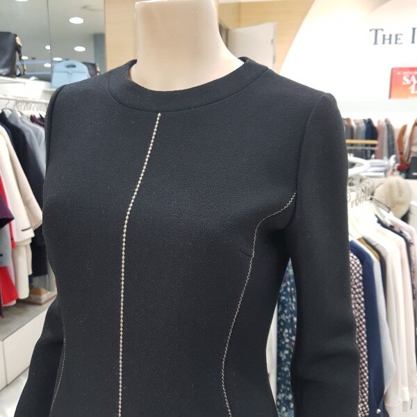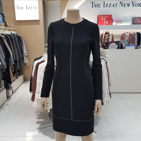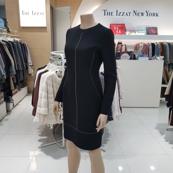 심플한 스티치 포인트가 돋보이는 페미닌한 기본 슬림 원피스입니다