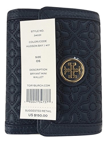 -. Binding : Apparel -. Brand : -. Department : womens -. Feature : quilted leather wallet with gold toned hardware / Double stacked T logo in front; Imported / Flap with front snap closure / Interior features 1 billfold slip pocket, 1 zip pocket, and 3 card slots / Approx. dimensions: 4.25 in (L) x 3.75 in (H) x 0.75 in (W) -. Model : 34031 -. ProductGroup : Apparel -. ProductTypeName : ACCESSORY -. Size : One Size -. Title : Bryant Mini Wallet in Quilted Leather, Style No 34031