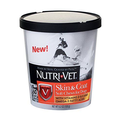 Nutri-vet skin & coat soft chews for dogs contain Omega fatty acids that help dogs achieve a soft, silky and shiny coat as well as support normal shedding. An easy way to reward your dog with a tasty treat and a healthy coat.Feature
