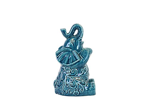 Urban Trends Ceramic Trumpeting and Sitting Up Elephant Figurine with Arms Crossed in SM Gloss Finish, Turquoise