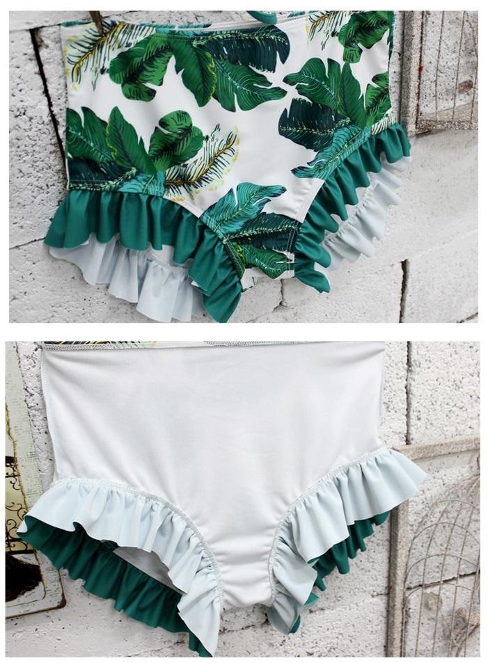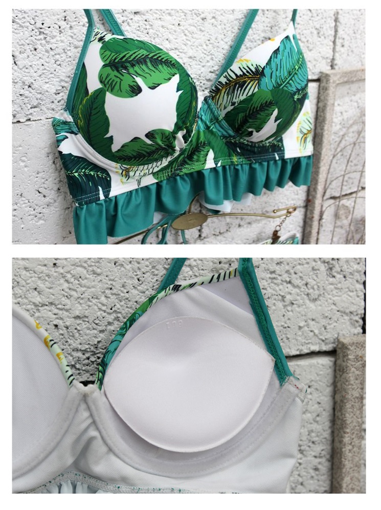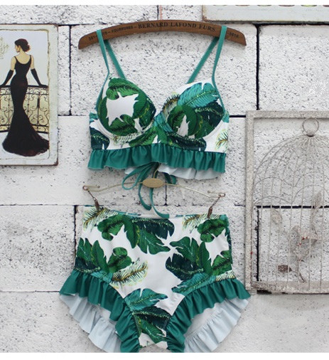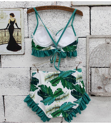 大人っぽいボタニカル柄のビキニと、レーストップスの3点セットです。