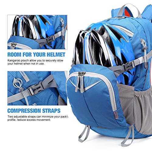 -. Feature : MATERIAL- Nylon ,Water-resistant Nylon as the fabric do not allow water to easily penetrate. / MULTIFUNCTION- Hydration bcakpack have Multiple Pockets Perfect for separating and organize your items. Perfect for cycling, hiking,running and climbing. / BREATHABLE DESIGN- Special padded areas with mesh fabric on the back offer cushioned comfort, while also promoting air circulation along your back and shoulders. / KANGAROO POUCH- Special pouch with two velcro pockets. You can both highly compress the contents of the bag and lash extra gear or clothing to the kangaroo pouch.And allow you to securely stow your helmet when not in use. / HYDRATION SYSTEM COMPATIBLE- Internal hydration bladder's compartment,big enough for 2.5L bladder (Hydration bladder not included).Dual exit hydration access for the tube.