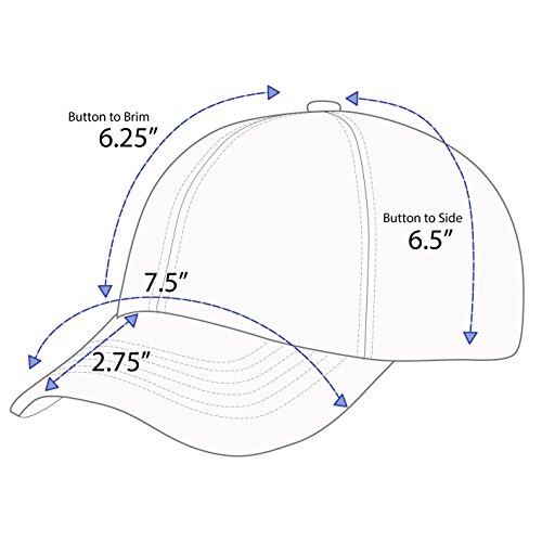-. Feature : Comfortable all-day wear,6-panel and eyelets, unstructured, low-profile,pre-curved. / Crown measures 5"H, Brim measures 3" L and 7.5" W / One size fits most. Adjustable Brass closure / Six rows of stitching on bill,pre-curved.Hand Wash. / Type "The Hat Depot" in the search box to find all of our great headwear on Amazon