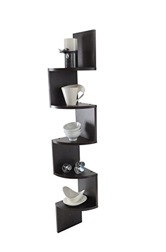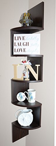 Adorn 5 Tier Wall Mount Corner Shelves Walnut Finish