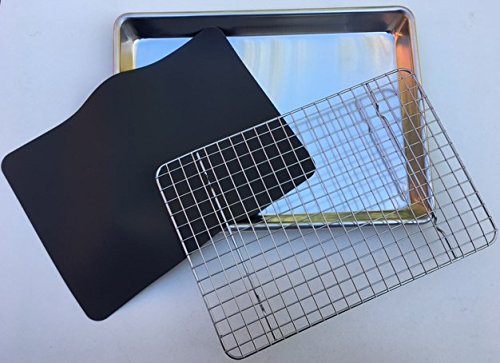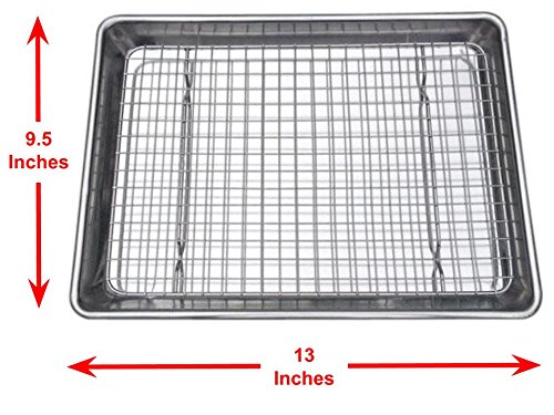 The perfect size for Sheet Pan Suppers for two, our Quarter Sheet Set measures 9 ½ by 13 inches. This baking pan with rack set will also fit into some large convection countertop toaster ovens.*