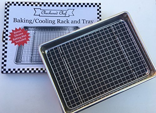 Checkered Chef Quarter Sheet Pan and Rack Set 9.5 x 13 inches. Aluminum Cookie Sheet / Baking Sheet Pan with Stainless Steel Oven Safe Cooling Rack. Bonus Silicone Baking Mat Included.