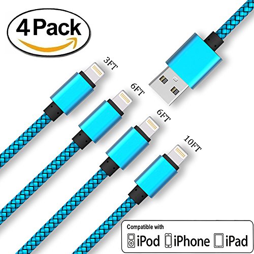-. Title : iPhone Cable Charger Xilsn 4Pack (3ft/6ft/6ft/10ft) Nylon Braided Lightning to USB Cable Fast Charging Cord for iPhone X/8/8 Plus/7/7 Plus/6/6 Plus/6s/6s Plus/5/5s/5c/SE (Blue)