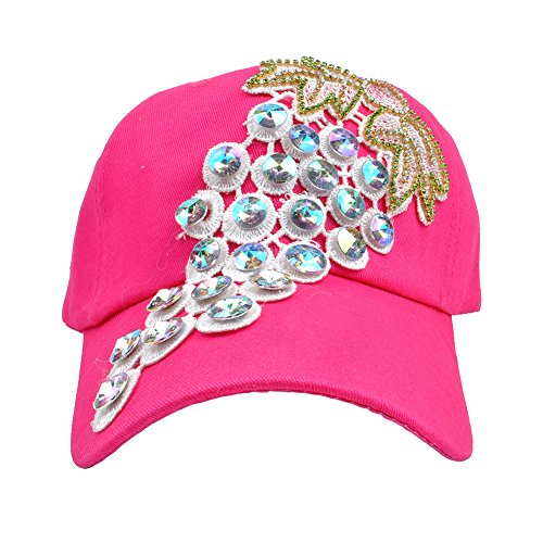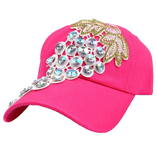-. Title : Elonmo Cute Hot Pink Grape Design Womens Baseball Cap Jewel Rhinestone Bling Hats Jeans Wash Denim Adjustable