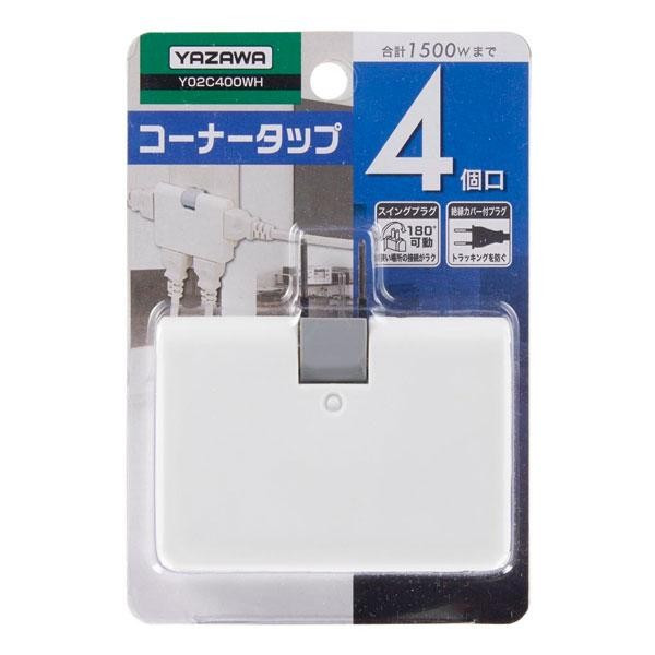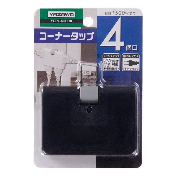 プラグはホコリや湿気によって発生するトラッキング火災を予防する絶縁カバー付きです♪ 製造国:中国 素材・材質:ポリカーボネート 商品サイズ:約W76×H55×D14mm 重量:約50g 仕様:4個口合計使用容量:1500Wまでプラグ形状:スイング耐トラッキング仕様 付属品:保証書(保証期間:1年間) ※サプライヤー直送品  ご注文後2~3営業日後の出荷となります【商品名】YAZAWA(ヤザワコーポレーション) コーナータップ 4個口 Y02C400 BK・ブラック
