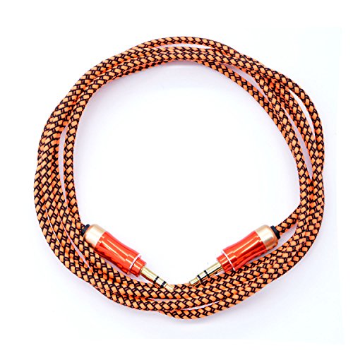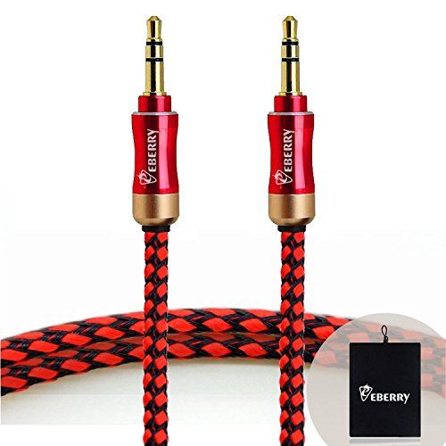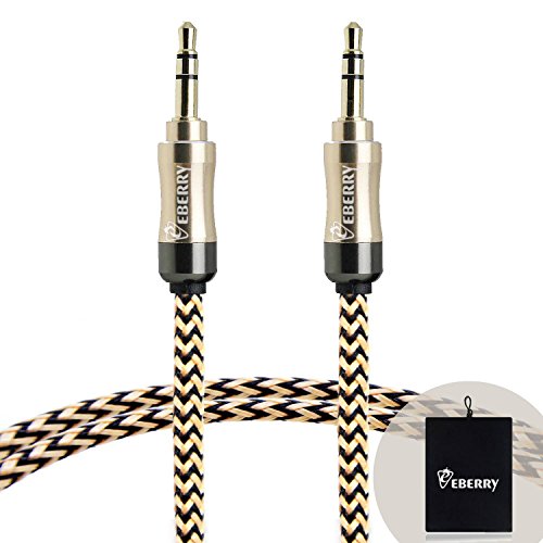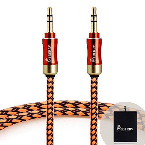 eBerry® [A04 3.5mm Male to Male Audio Cable] Special Color Contrast High Quality Nylon Fiber Cloth Foil Shielded Slim Waist Connector Shell Audio Aux Cable Car and Home Auxiliary Stereo Jack Cable Cord (4.6ft/1.4m) + Black Microfiber Storage Pouch Ca