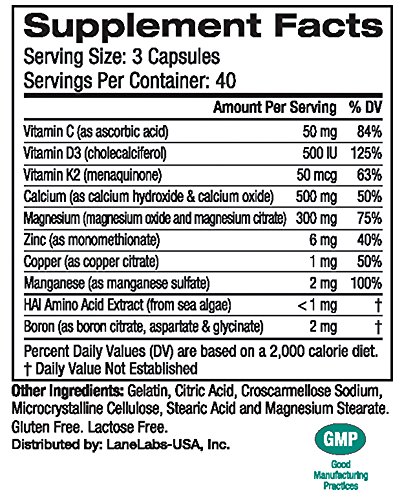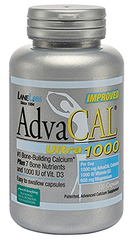 -. Binding : Health and Beauty -. EAN : 0129500322006 -. Feature : 1000 IU of Vitamin D3 / 1000 mg of AAACa elemental calcium, the #1 Bone-Building Calcium* / 600 mg of magnesium / AdvaCAL ULTRA 1000 is an excellent calcium supplement for women of all ages and men concerned about their bone health. Three tiny capsules twice daily helps build stronger bones for life!* / AdvaCAL Ultra 1000, by LaneLabs, is a bone-building calcium supplement that contains patented AAACa calcium plus 7 other bone building nutrients. Capsules are small and easy to swallow.* -. IsAdultProduct : 0 -. Label : Lane Labs -. Manufacturer : Lane Labs -. PackageQuantity : 1 -. ProductGroup : Health and Beauty -. ProductTypeName : HEALTH_PERSONAL_CARE -. Publisher : Lane Labs -. Studio : Lane Labs -. Title : Lane Labs AdvaCal Ultra 1000 - 120 Gelatin Capsules -. UPC : 129500322006
