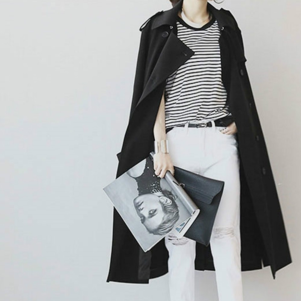 オフィス・通勤☆きれいめ カジュアル ロング トレンチコート ブラック