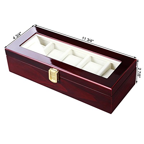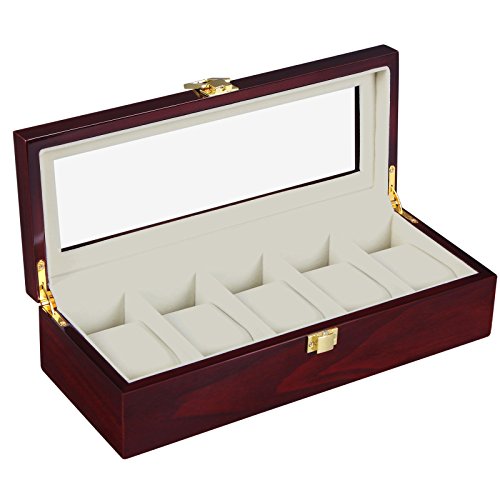 SONGMICS Watch Box Wooden Organizer 5 Slots Display Case Cherry UJOW05C