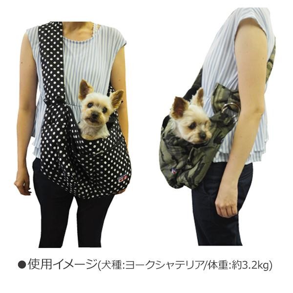 | ペットを抱っこするのにラクラク♪ふわふわの生地で気持ちいいスリングタイプのキャリーバッグ!!スクウェアタイプで底面のスペースが広く、ペットが過ごしやすい空間になっています。飛び出し防止用のフックも付いているので安心!! |
