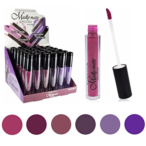 -. Binding : Misc. -. Brand : Kleancolor -. EAN : 0841265105228 -. Feature : The color gorgeous shades of Madly Matte Lip Gloss provides rich color in a matte finish for all day wear without drying. / It goes on as a highly pigmented liquid and dries to a smooth matte finish. Lips are colored in velvety perfection that lasts. / So grab one and go! You're off to a smooth start with Madly Matte Lip Gloss. -. IsAdultProduct : 0 -. Label : Kleancolor -. Manufacturer : Kleancolor -. MPN : KCLG1634 -. PackageQuantity : 1 -. PartNumber : KCLG1634 -. ProductGroup : Beauty -. ProductTypeName : BEAUTY -. Publisher : Kleancolor -. Studio : Kleancolor -. Title : Set of 6 Colors Madly MATTE Lipgloss Bold & Vivid Color Matte Lipgloss Set #7 -. UPC : 841265105228