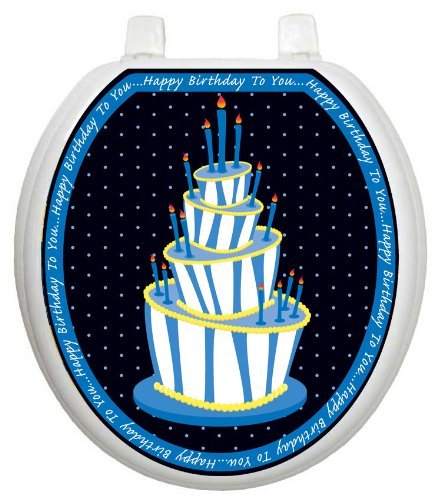 -. Title : Toilet Tattoos TT-0005-R Blue Birthday Cake Decorative Applique For Toilet Lid, Round