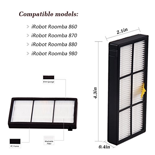 These Replacement iRobot Roomba Hepa Filters made of high quality PC, fully use of efficient filter material. Filters maintain Roomba's cleaning performance while reducing infiltration of dust, pollen and other allergens into the air you breathe.