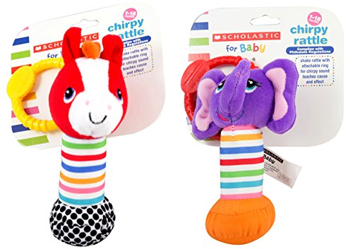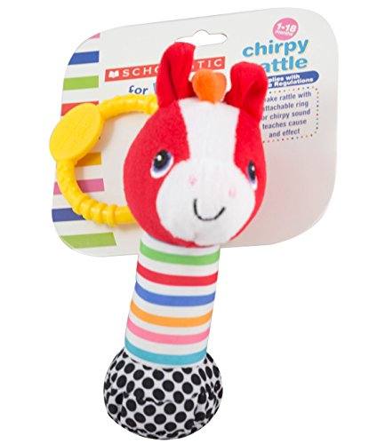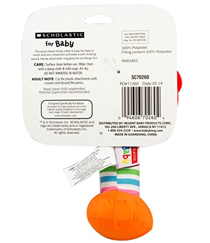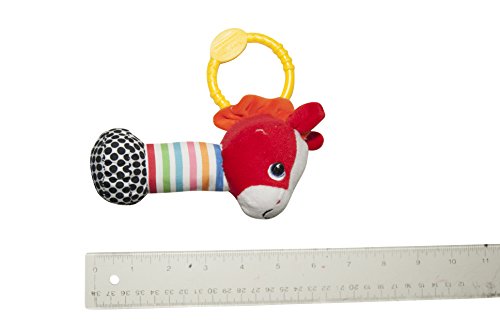 -. Feature : For ages 1 to 18 months. / Shake rattle with attachable ring for chirpy sound teaches cause and effect / Handy attachable ring great for on-the go fun! / 100% Polyester.