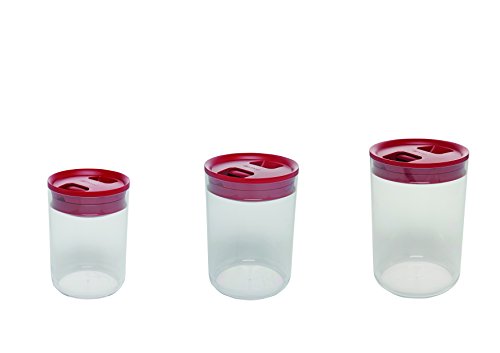 Click Clack Pantry Canisters with Red Lids, 1-Quart, 2.4-Quart and 4.2-Quart, Set of 3