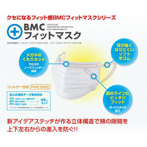 ●材質:本体・フィルター部:ポリプロピレン不織布 耳ひも:ポリエステル・ポリウレタン ノーズフィッター部:ワイヤー・ポリエチレン